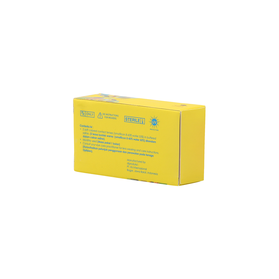 illustro Color Lensa kontak berwarna dari illustro ini tersedia dengan 3 warna yang dapat digunakan sehari-hari dalam jangka waktu 1 bulan Dengan bahan yang nyaman digunakan sepanjang hari, permukaan yang lembut, dan tahan akan bakteri dan debu Isi/Content : 2 buah (1 pasang - dengan besar power yang sama) Ukuran/Power Range : -0.50 s/d -5.00 step 0.25 -5.00 s/d -8.00 step 0.50 Modality/Jenis pemakaian : Pemakaian bulanan Masa pakai : 1 buah untuk 1bulan Kadar air/Water content : 55% Material : Omafilcon B with phosphorylcholine